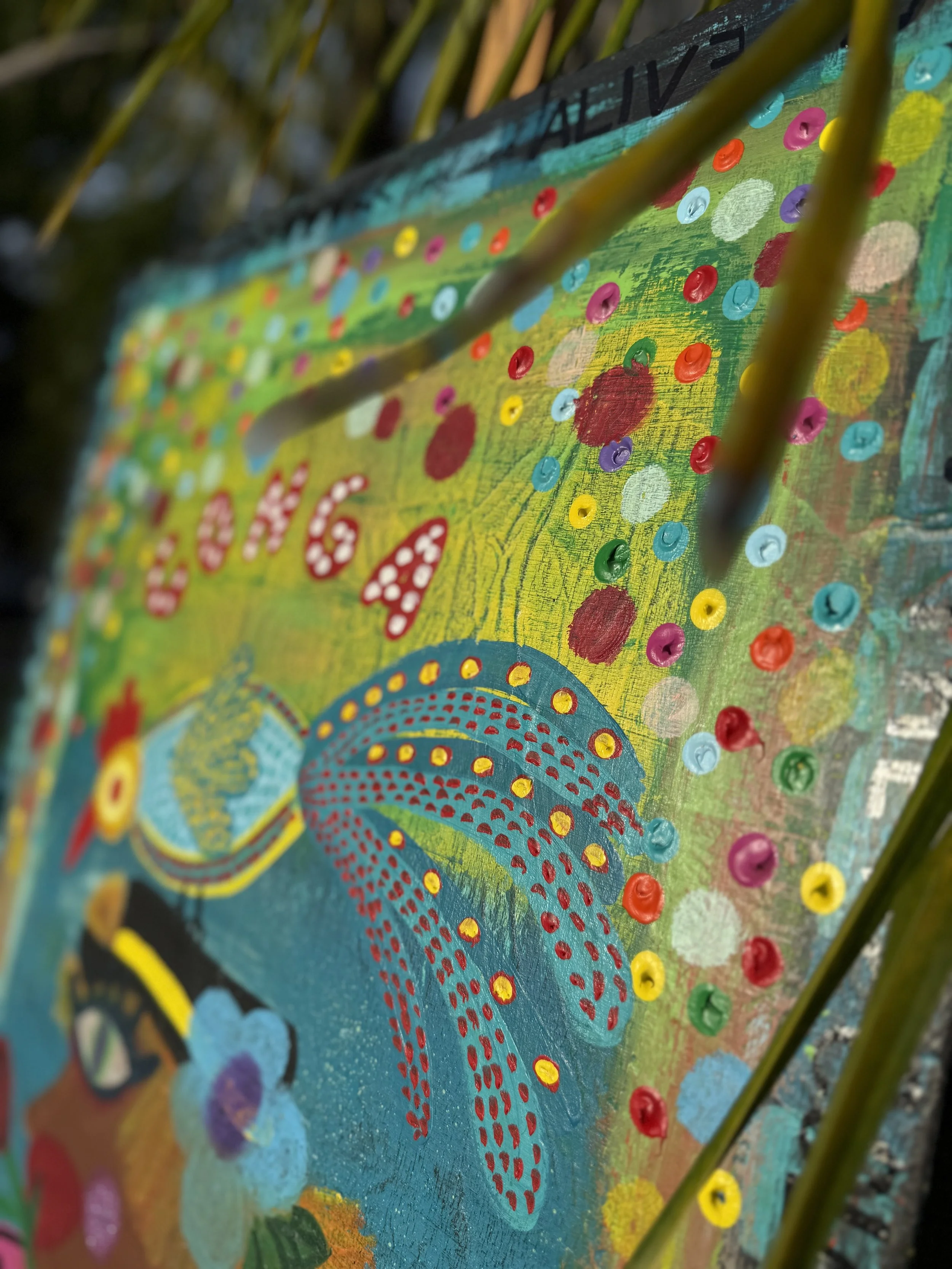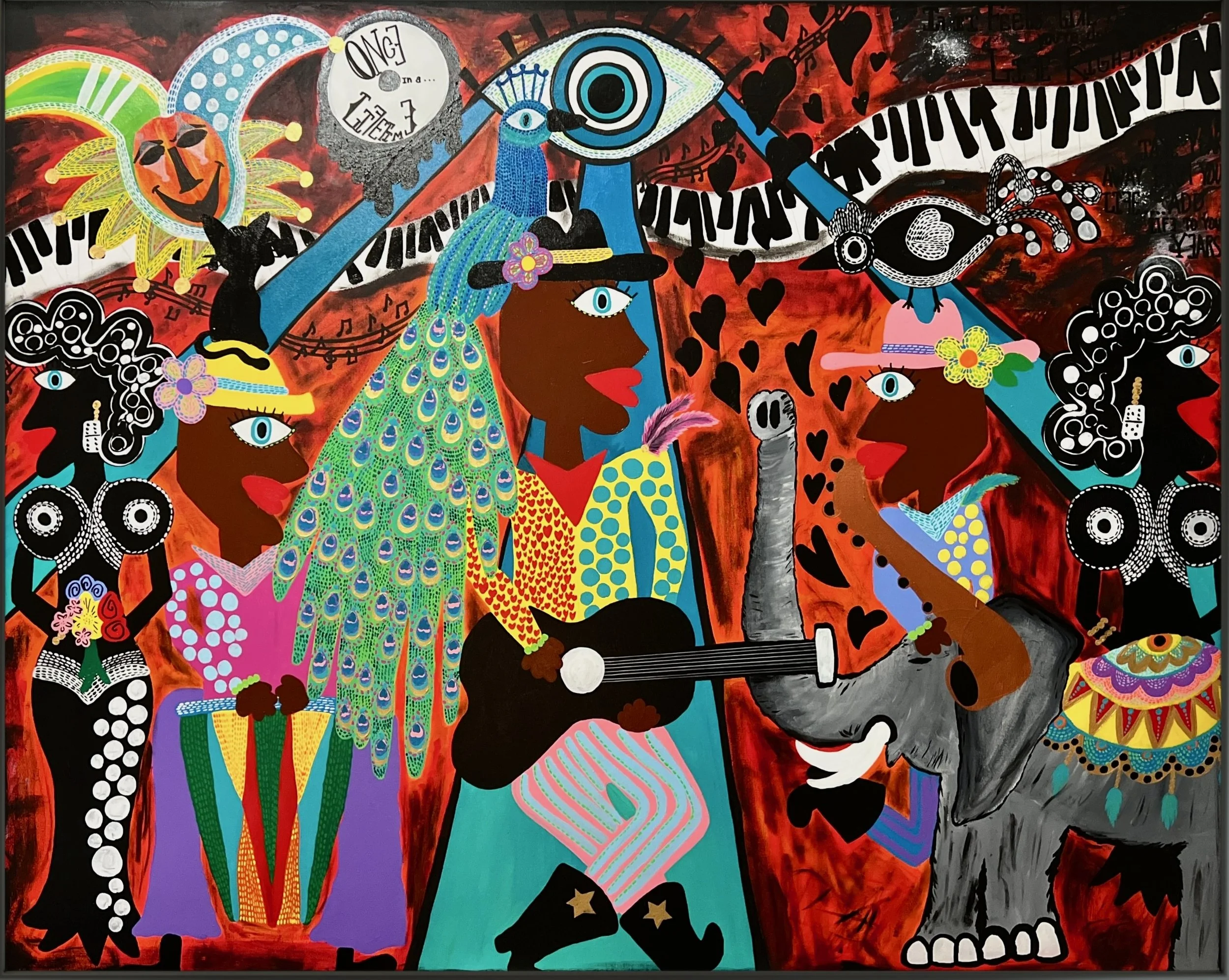 A defining signature of Luis's work is the recurring motif of a red heart with wings—a symbol of spreading love and positivity. Alongside glitter accents, this emblem reminds viewers of the joy and light his art brings into the world. Through his vibrant creations, Luis emphasizes the importance of mental health, using his art as a personal outlet and a universal message of hope.